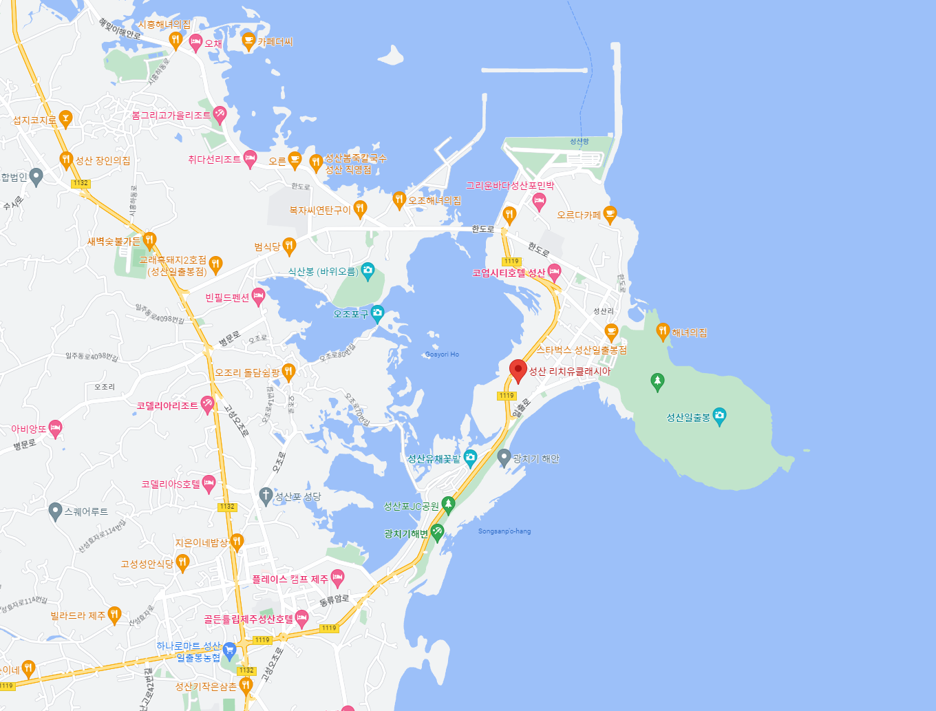 성산일출봉 근처에 위치한 바다가 보이는 전망 좋은 집입니다.