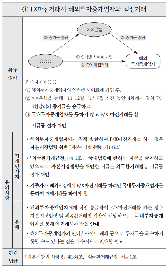 모든 기능을 사용하려면 해외 중개업자에 가입을 해서 거래를 해야 하는데 아래와 같이 증권사나 은행을 통하지 않고 해외에 직접 송금 처리하는 것은 불법으로 규정하고 있습니다.